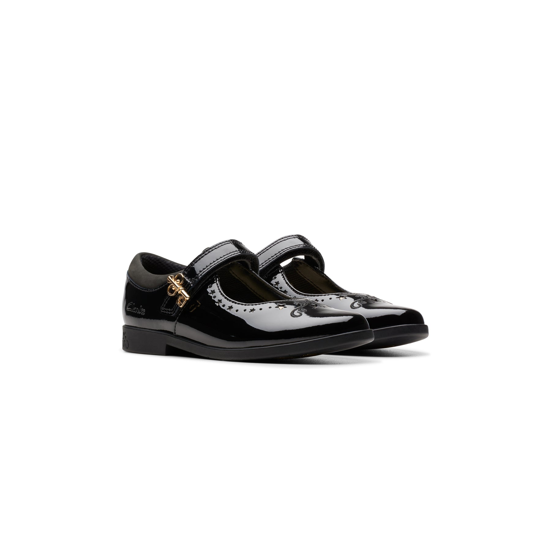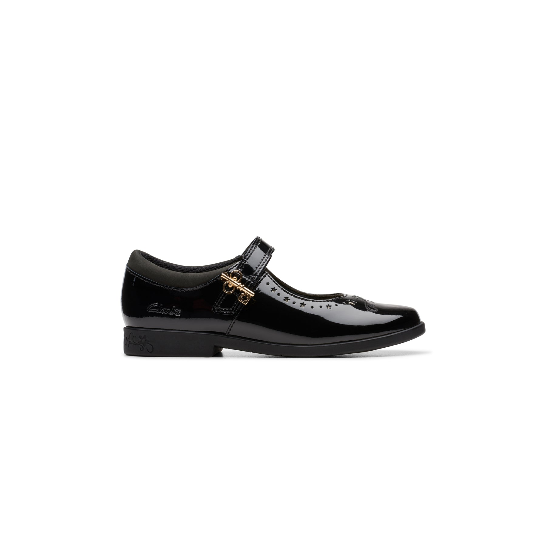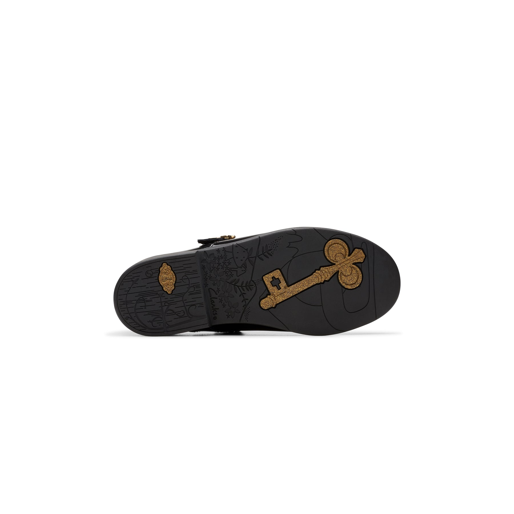 A super-cool addition to their school wardrobe, PLAYPRINTS shoe Lock Magic adds a little wonder to everyday wear. Crafted from patent leather with sweet cut-out design details, it utilises a bouncy foam footbed and riptape strap to keep feet feeling secure. And its archive-inspired key design, faux buckle and Magic Steps-printed sole will make sure kids shine, from learning in the classroom to meeting pals for lunch.