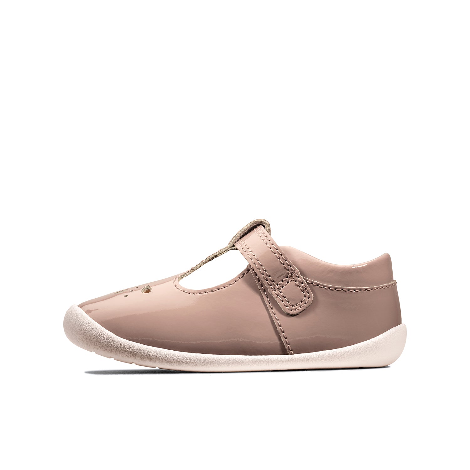Our classic toddler pre-walker Roamer Star, is crafted to support every memorable wobble and step. With sweet patent uppers and authentic cut-out details, a riptape strap disguised as a T-bar makes it breezy to take off (if they ever want to!). Underfoot, layers of cushioning and a grippy sole help steady curious feet.