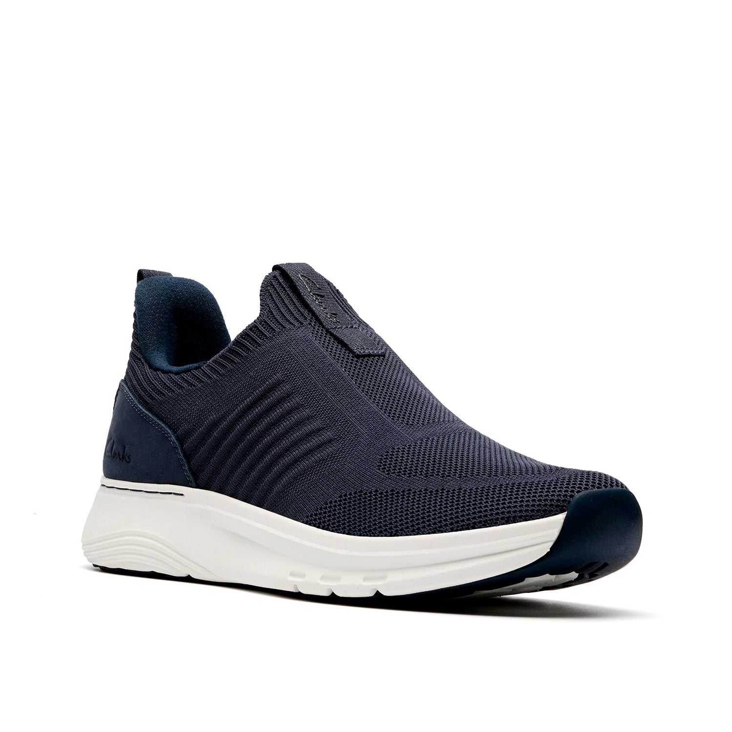 Introducing Motion Trek IN – our latest athletic-inspired casual silhouette. This modern profile features a breathable navy engineered knit upper, while leather heel overlays lend structure and support to elevate the aesthetic. Its slip-on, sock-fit design and extended heel provide ease of wear, making it a standout athleisure-inspired style.