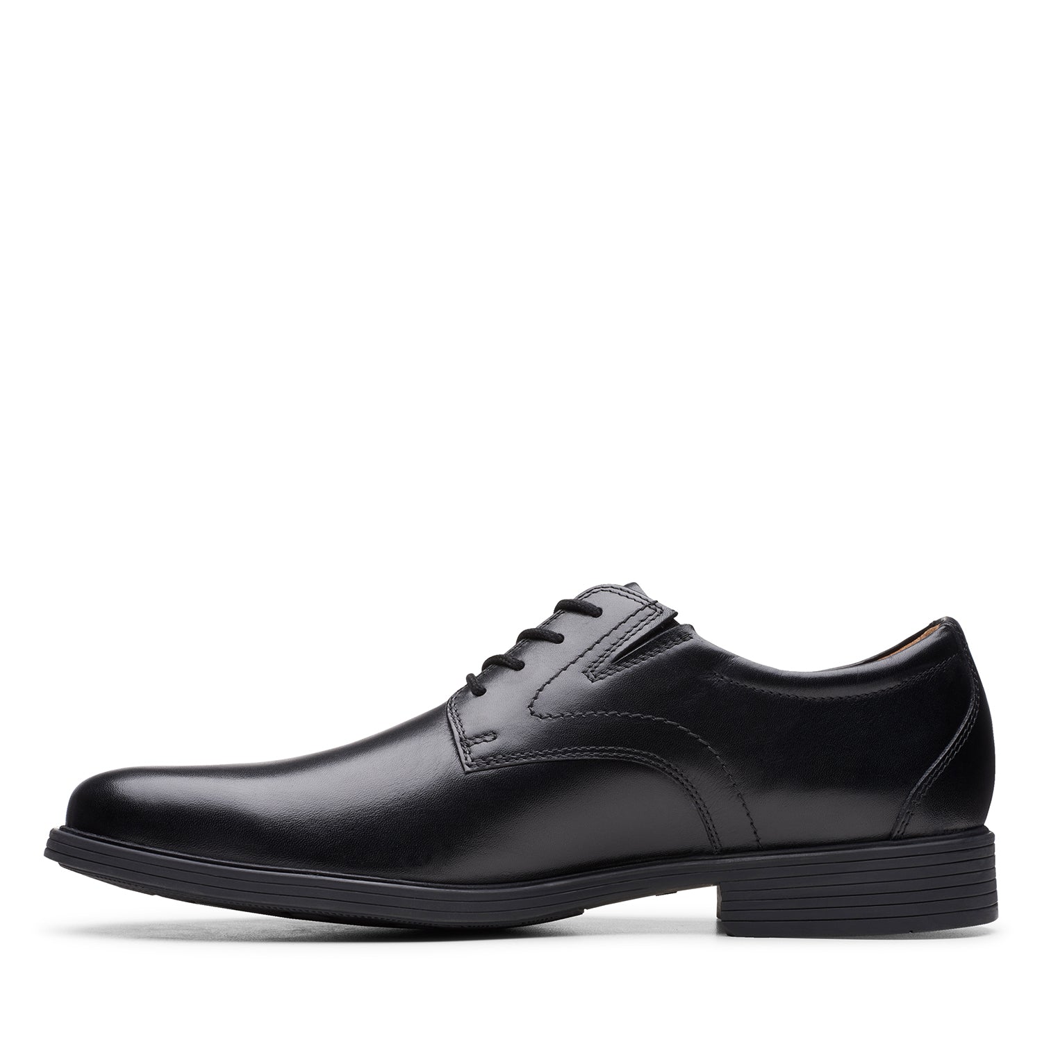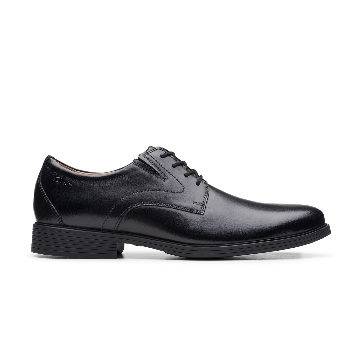 A timeless profile added to the Clarks Collection this smart men's lace-up teams smooth burnished dark tan leather with a classic rounded toe shape, slimline sole and tailored stitching. Double elastic gores and strategically placed cushioning enhance comfort while the outsole features added grip.