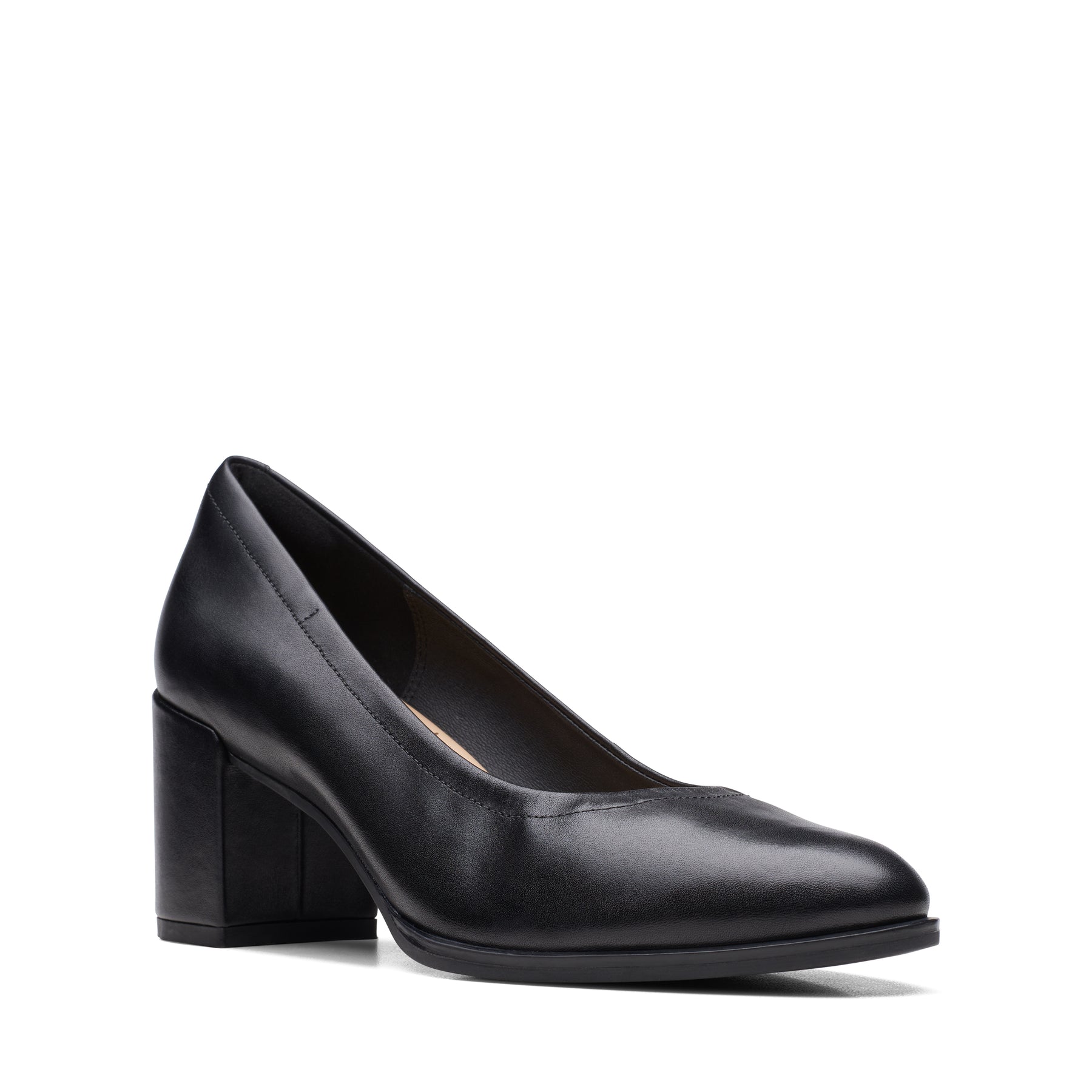 - Responsibly sourced premium leather upper Moulded, part-recycled, leather-lined Contour Cushion footbed supports every step Rubber outsole for maximised flexibility -Easy-wear cupped block heels add elevation without compromising on comfort Heel height: 55mm