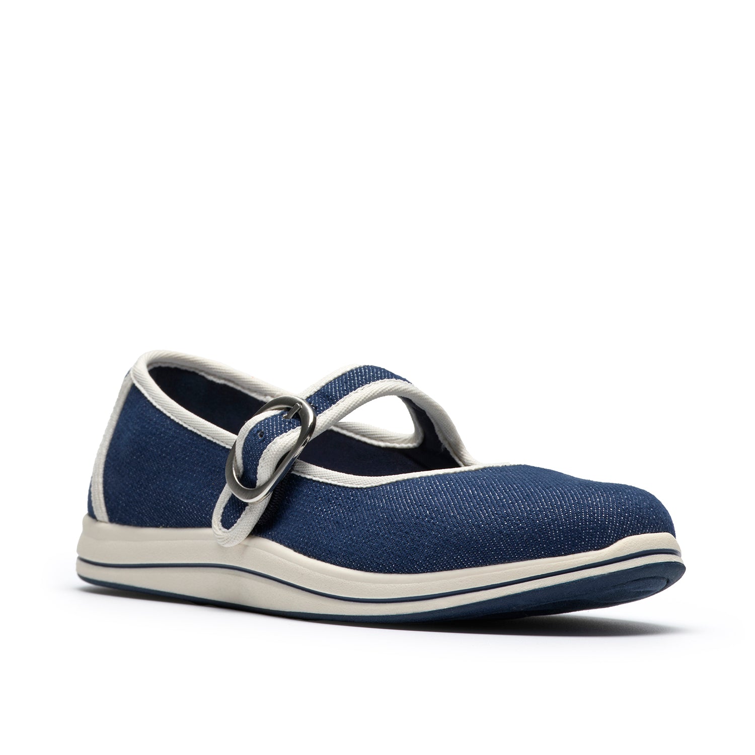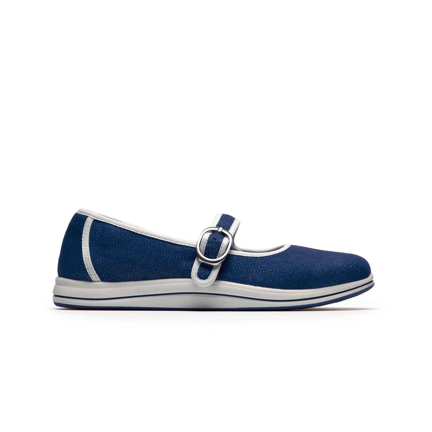 - Durable navy textile upper