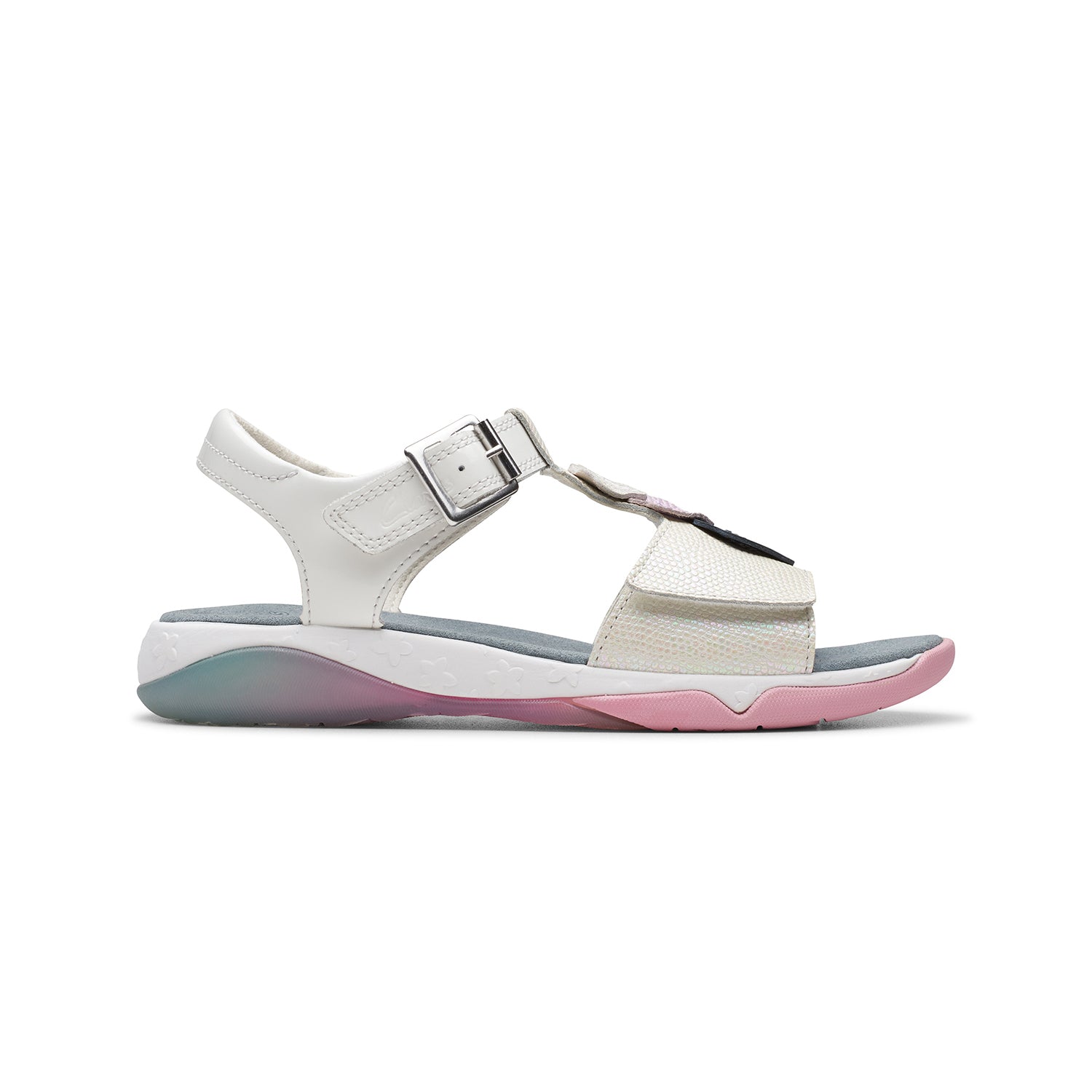 The clues in the name – you just can’t say no to our brand-new kids' sandal Osian Charm. Prepped for wear after wear with its metallic leather upper and spongy foam footbed, adjustable straps keep precious little feet feeling secure, and its 3D shells, flowers and printed sole leave a magical mark wherever they wander – from picnics in the park to sandy shores.