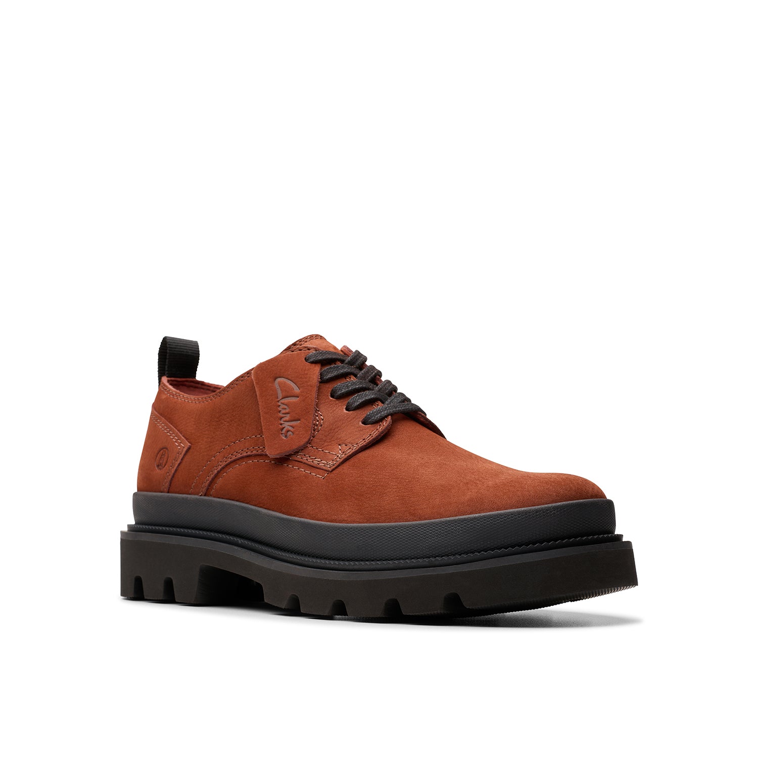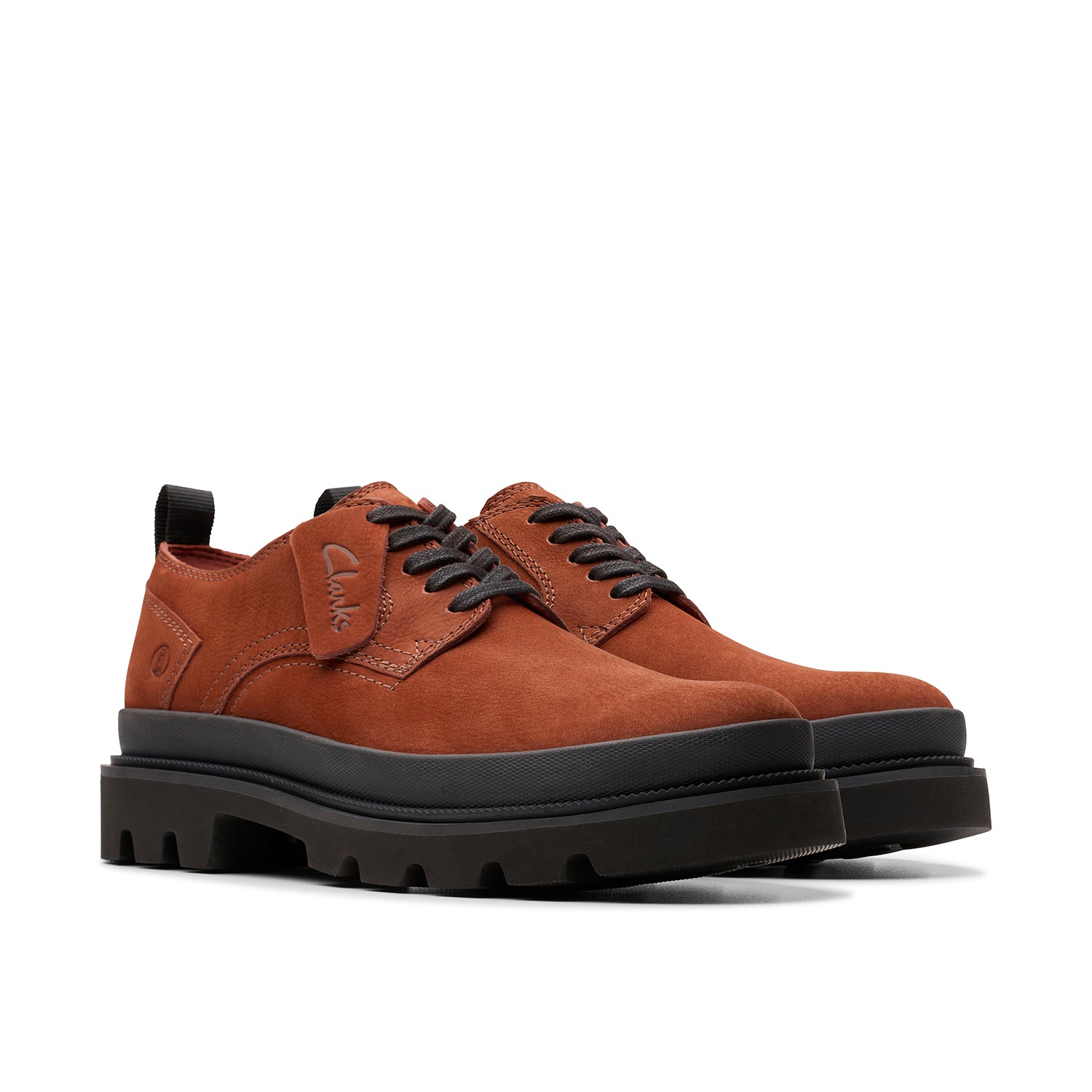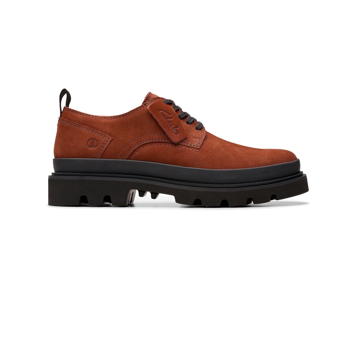 Melding archival Clarks design with a super-light chunky sole, Badell Lace is this season's crafted smart-casual shoe. Premium nubuck uppers in warm chestnut combine with our contour cushion footbed to spur your every step forward, while authentic laces and a branded fob add timeless style appeal.