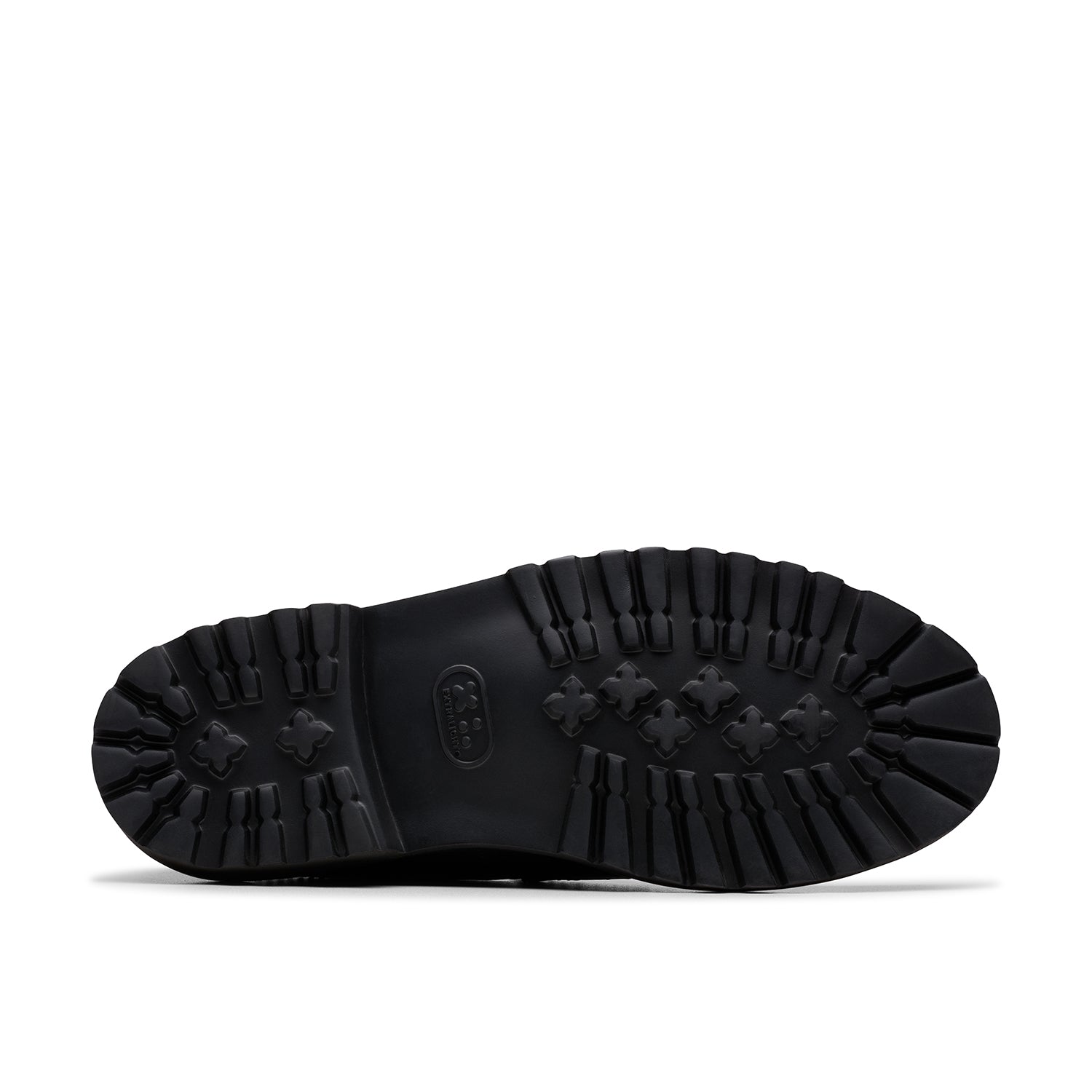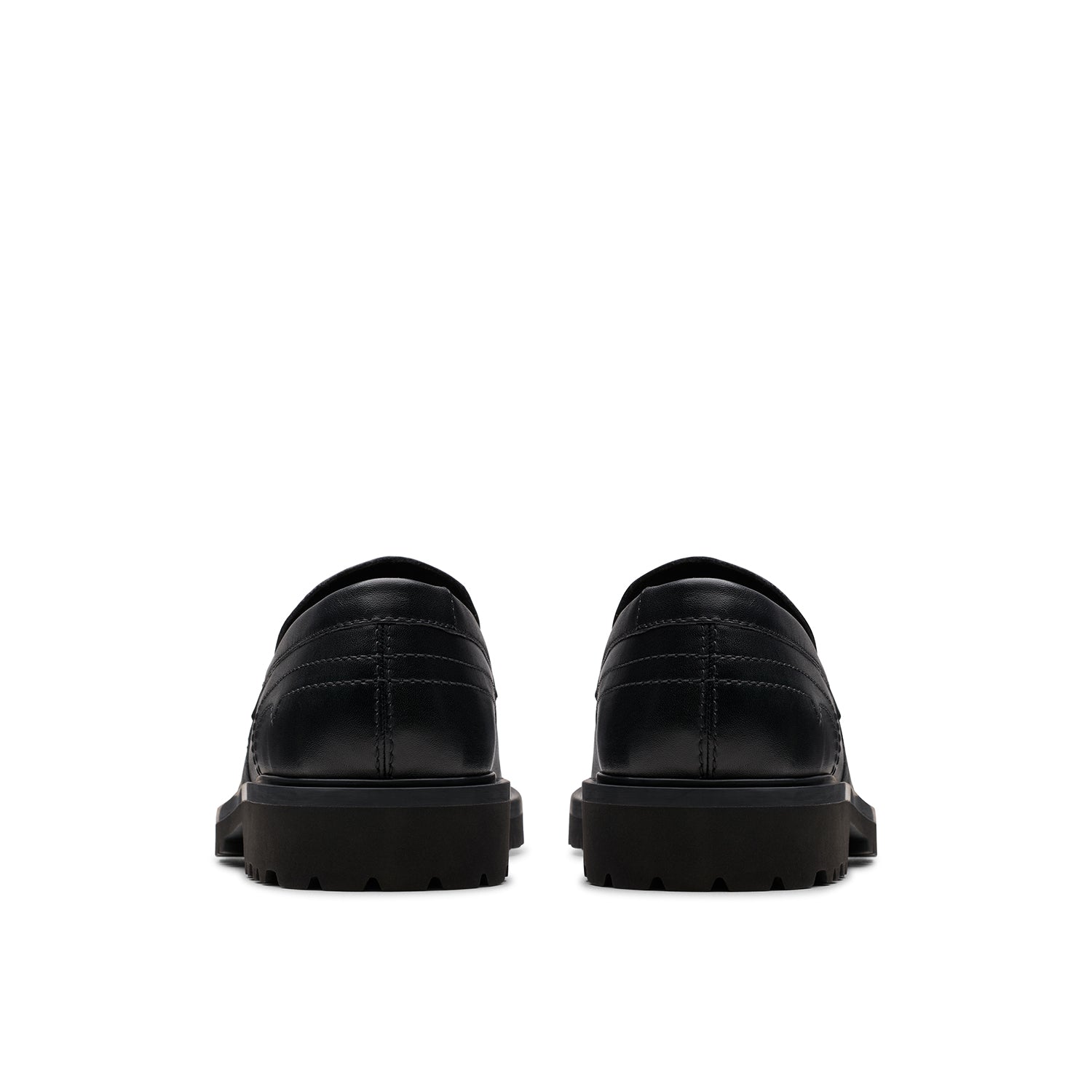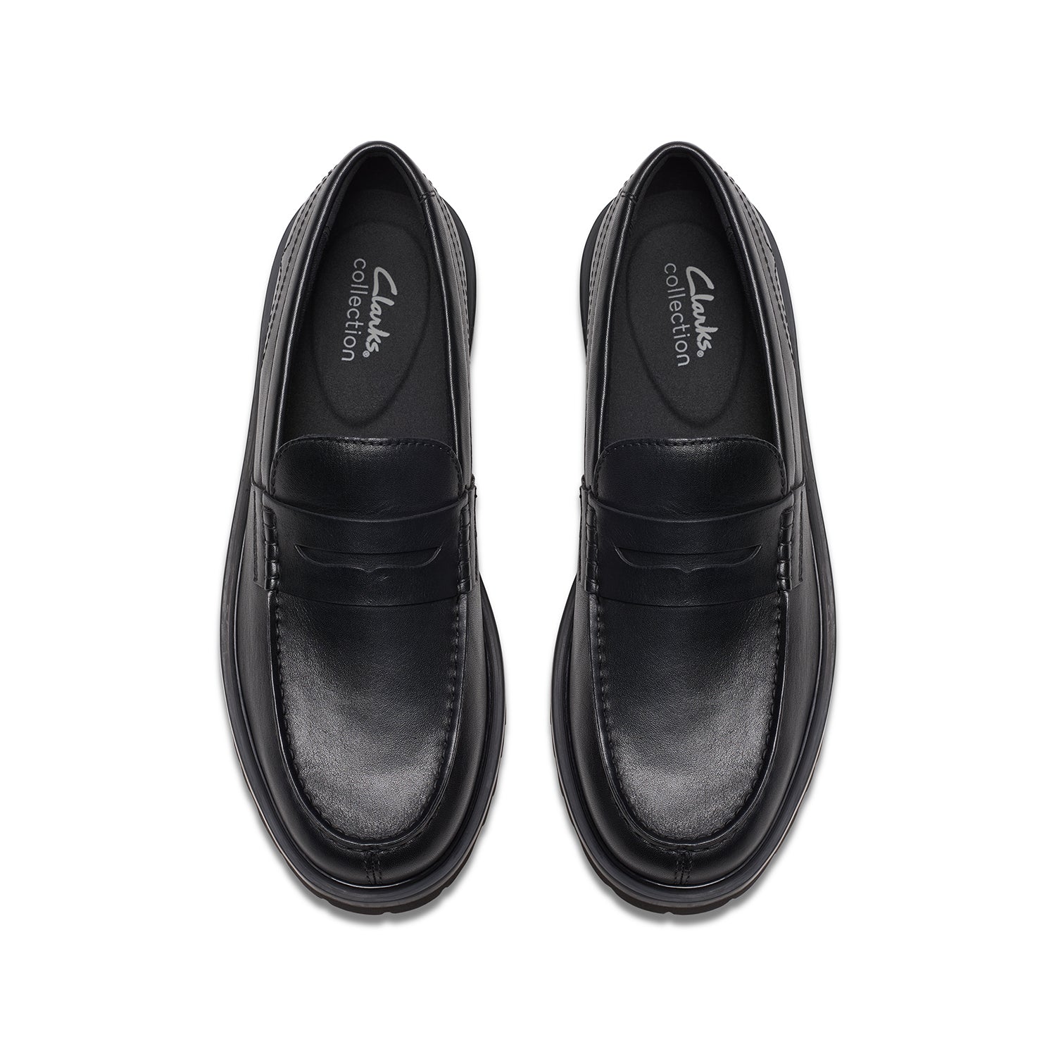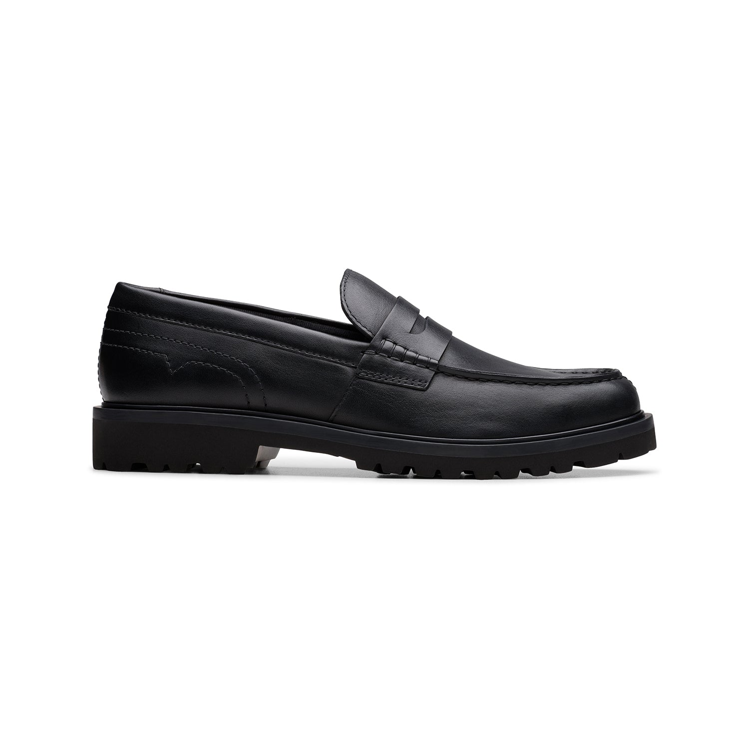- Premium black leather upper with penny loafer detailing offers a refined look
