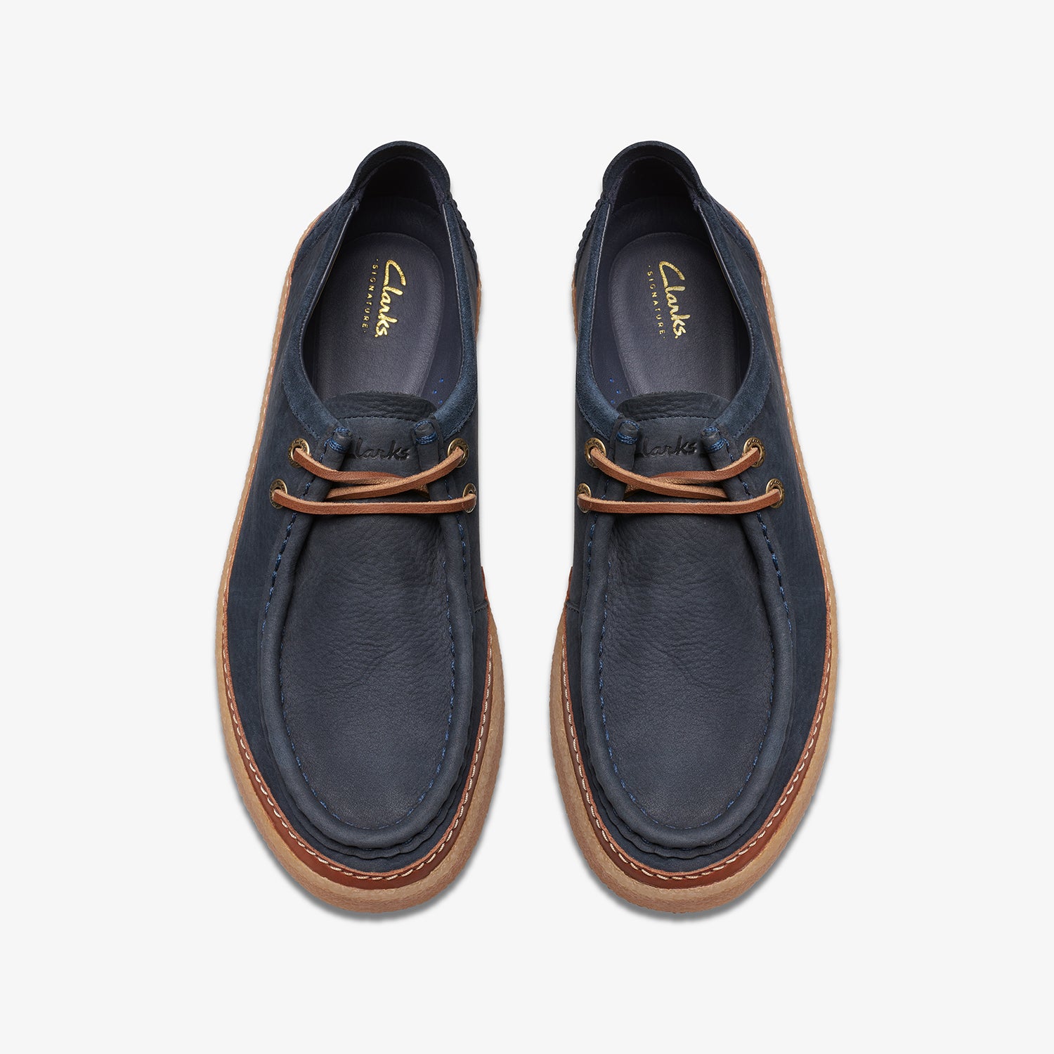 A brand new program for spring/summer, Clarkwood Moc is our fresh, pared-back interpretation of our ever-popular Desert Trek. Taking design cues from our icon – minus the centre seam detail, a side stitch natural rand and Tor branding at the heel enhances its crafted look, while navy suede uppers balance its pebble crepe sole perfectly.