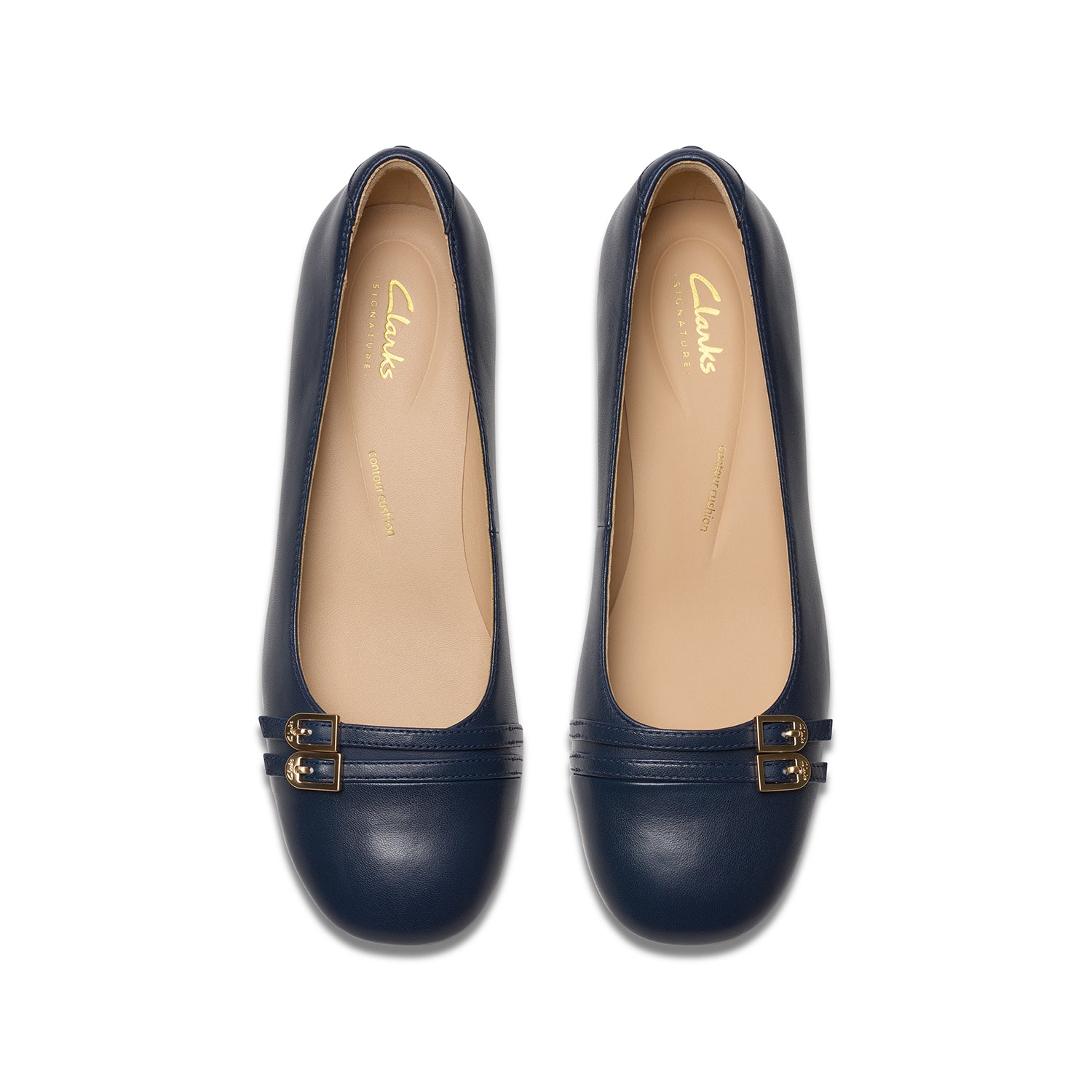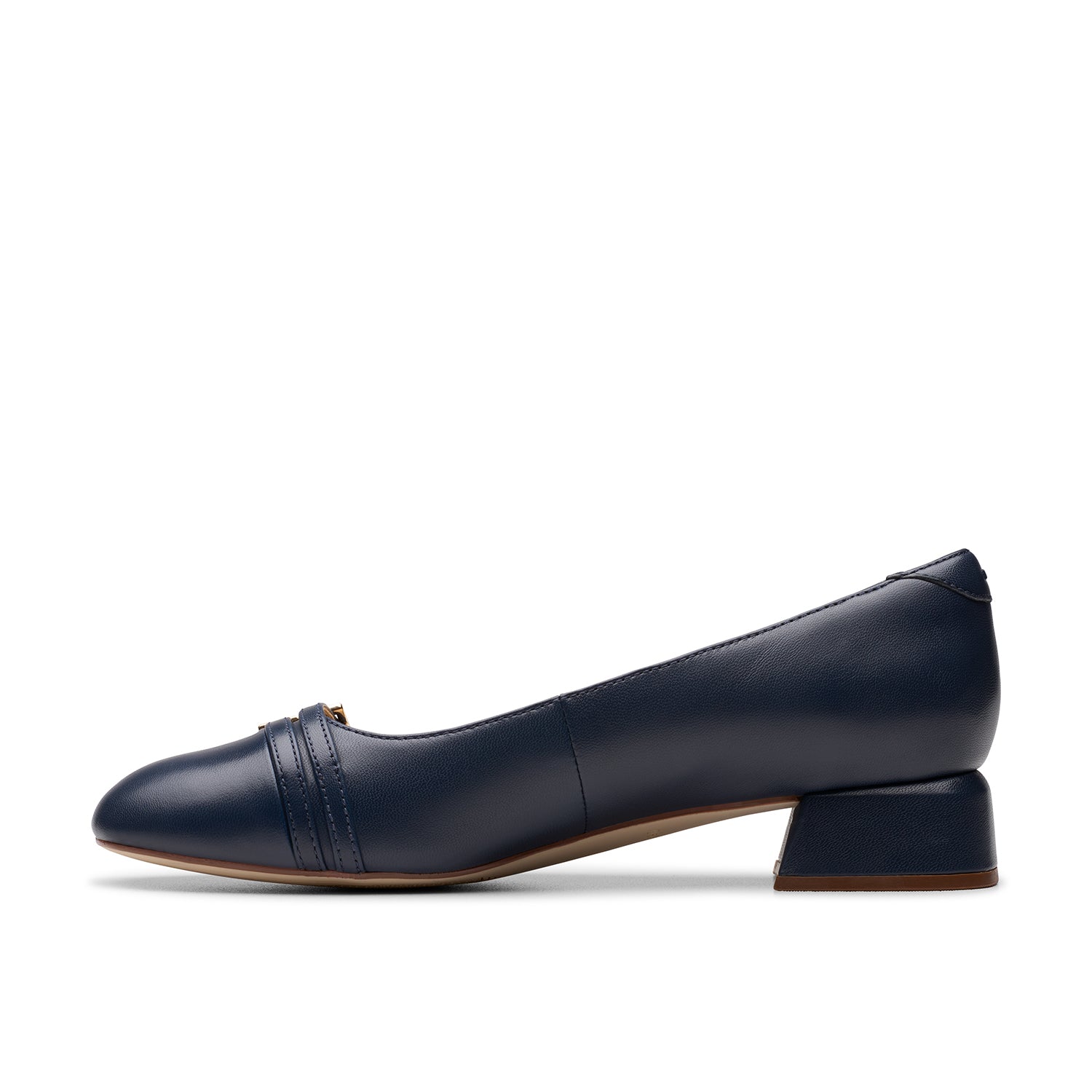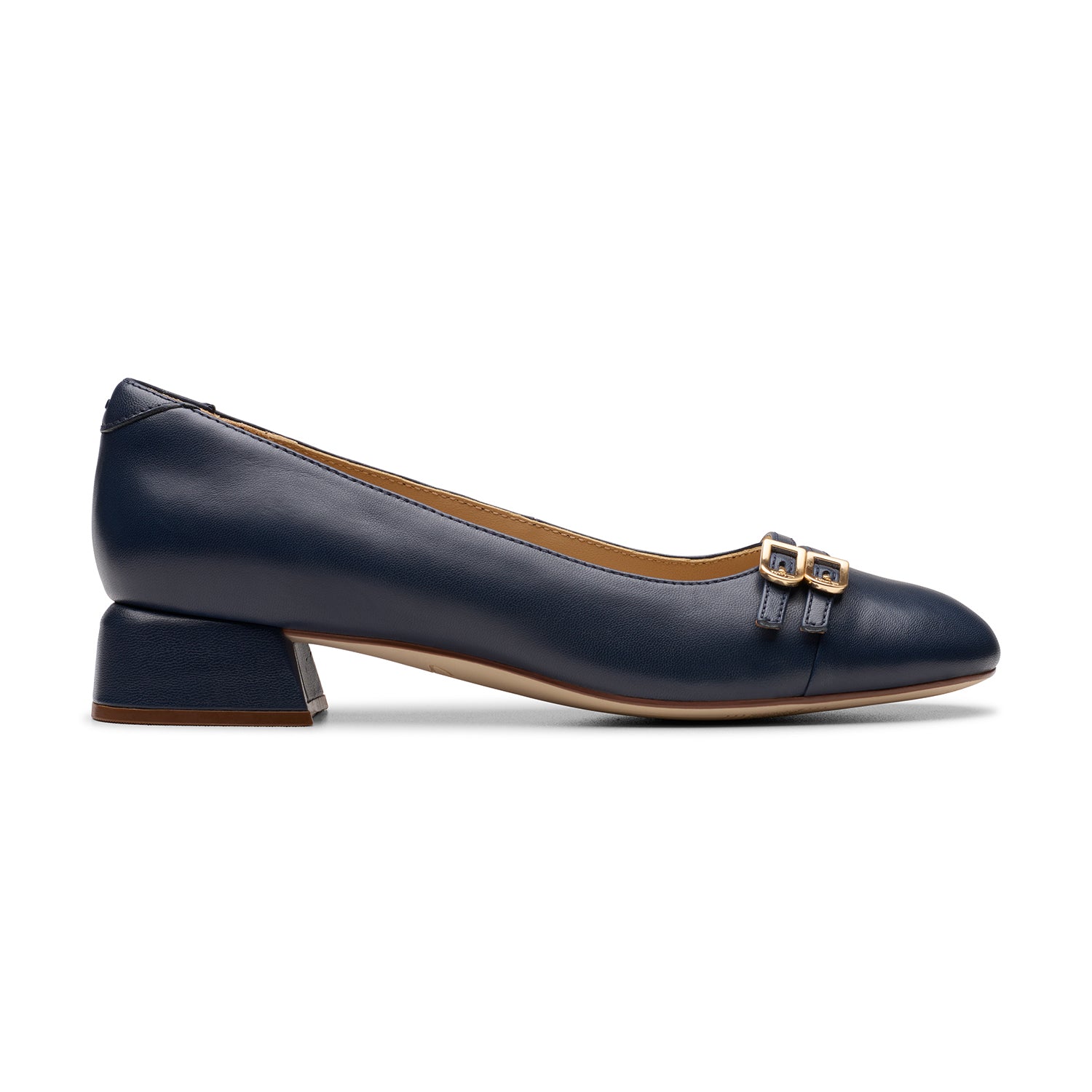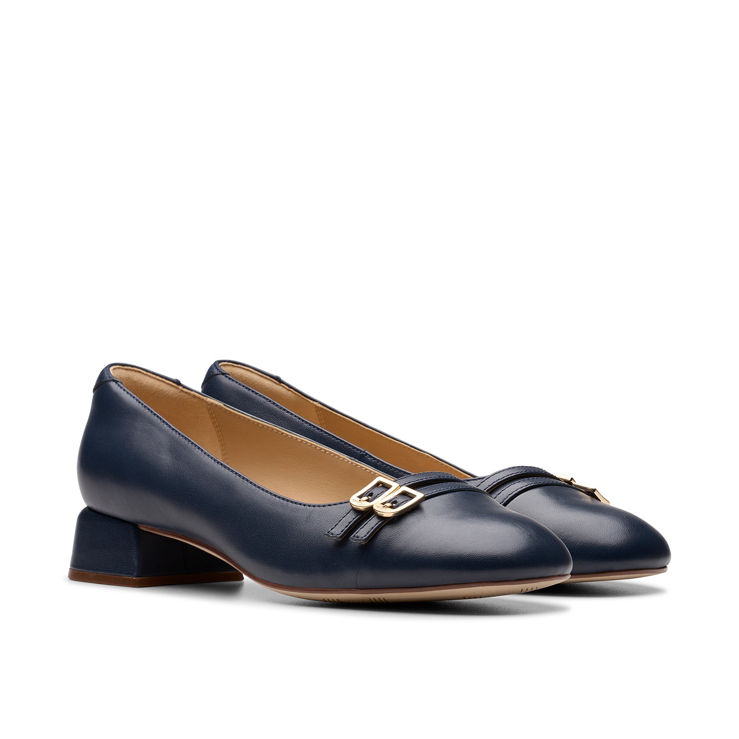 Our elegant crafted dress shoe Daiss30 Court combines sleek leathers in classic navy with effortless comfort to elevate the everyday. Set atop a flared heel, our pillow-soft footbed puts a pep in your step, and its contemporary strap detail with metal accents proves it’s all in the details.