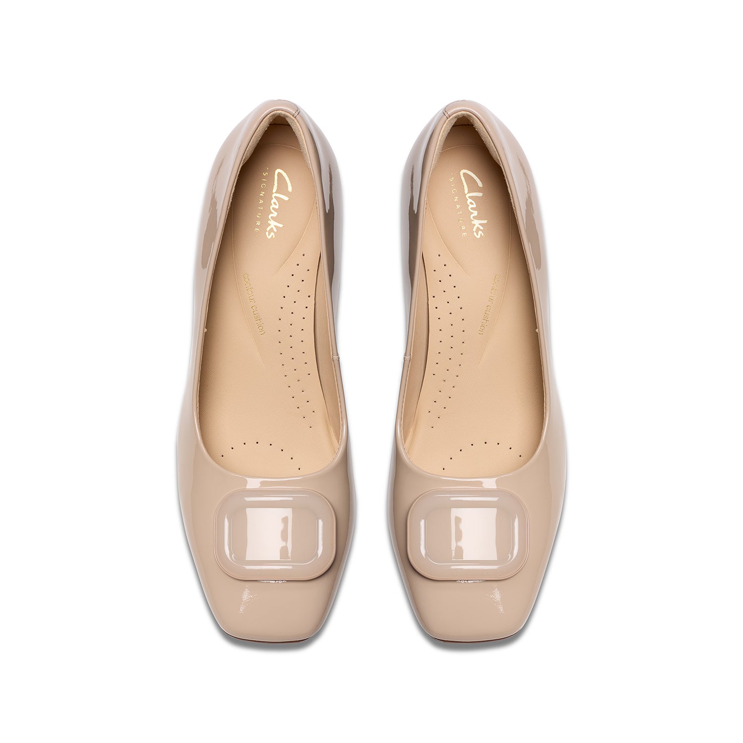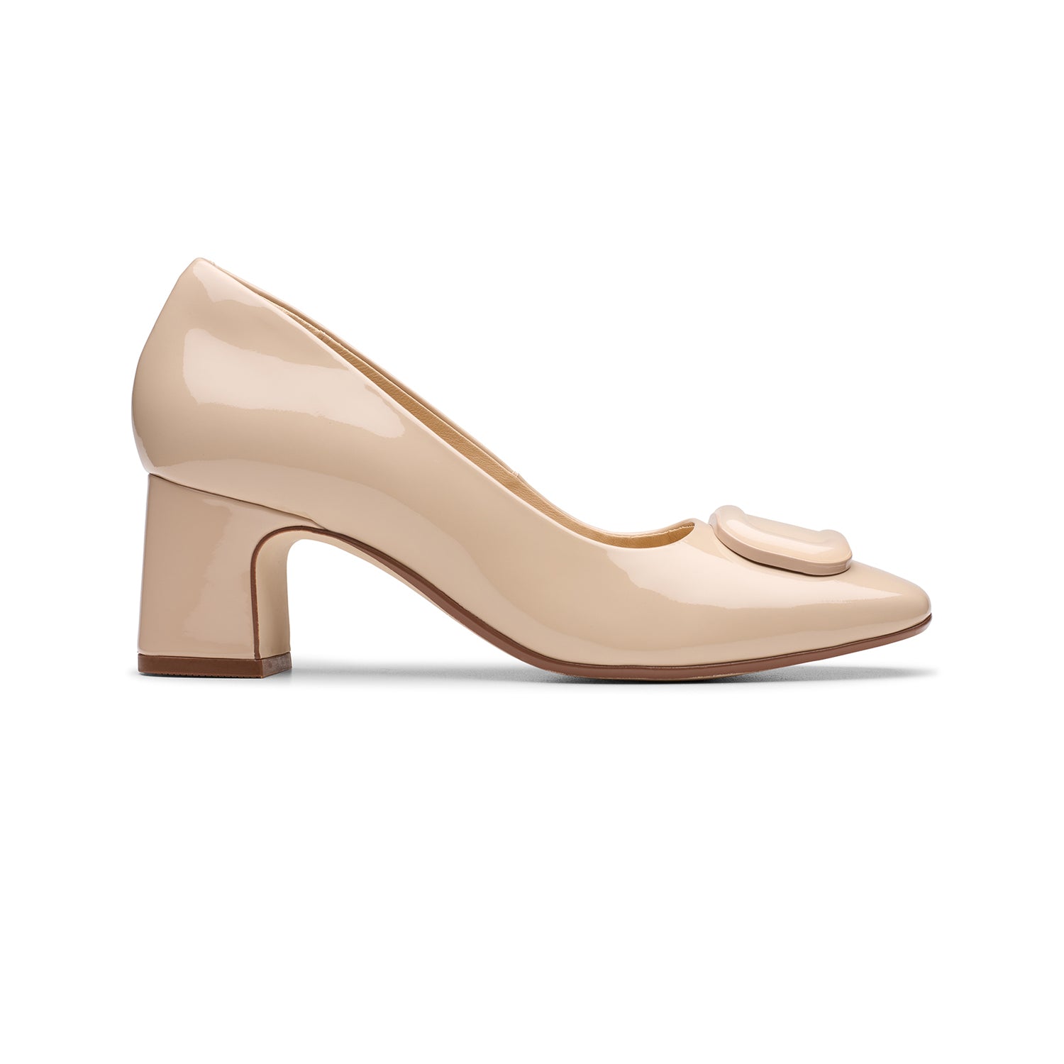 Fernie Trim combines sleek modern styling with premium materials, transitioning effortlessly from the office to smart-casual occasions. Crafted from glossy patent leathers, this profile features a block heel for a perfect balance of height and ease. Underfoot, our signature Contour Cushion footbed delivers lasting comfort, while a flexible rubber sole promotes comfortable movement, step after step.