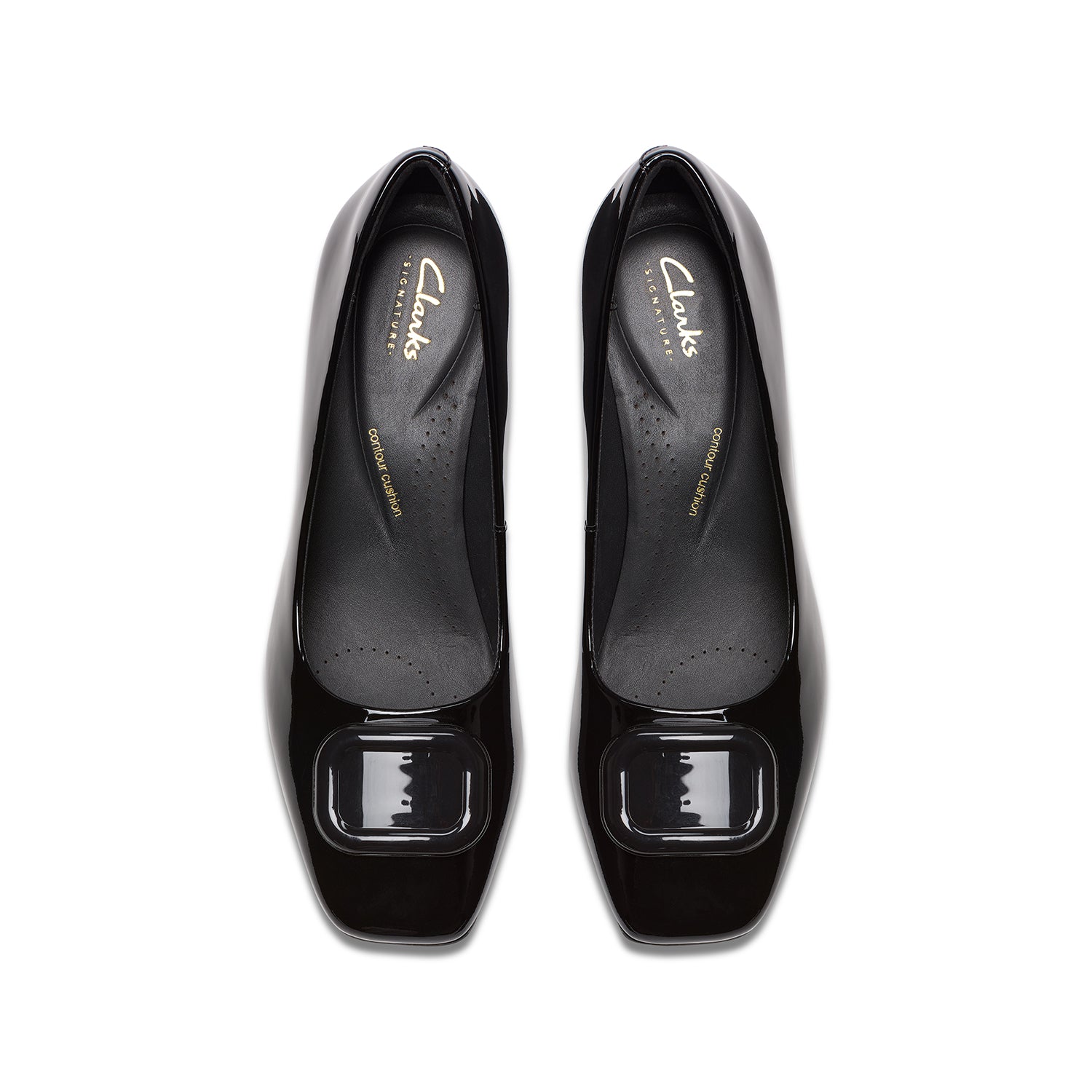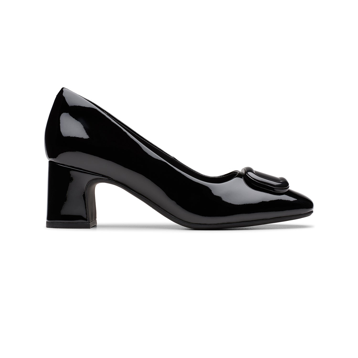 Fernie Trim combines sleek modern styling with premium materials, transitioning effortlessly from the office to smart-casual occasions. Crafted from glossy patent leathers, this profile features a block heel for a perfect balance of height and ease. Underfoot, our signature Contour Cushion footbed delivers lasting comfort, while a flexible rubber sole promotes comfortable movement, step after step.