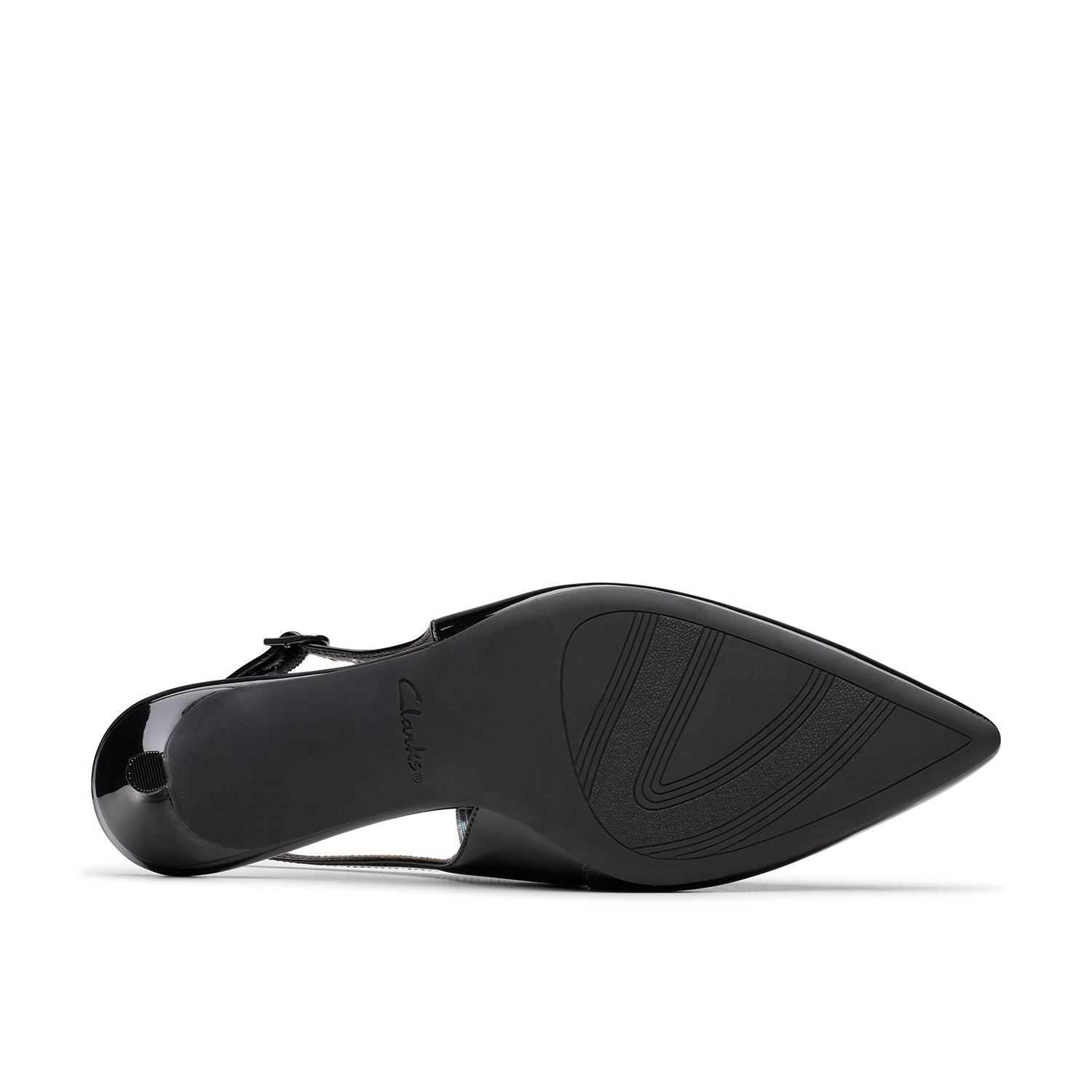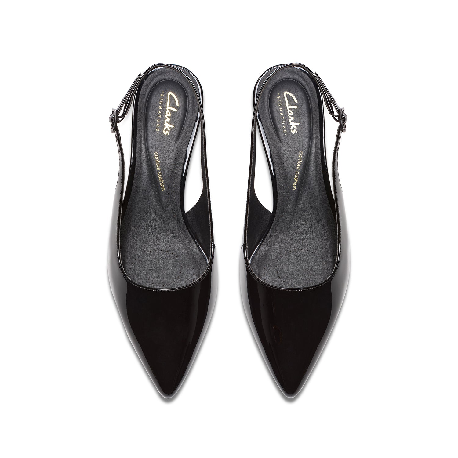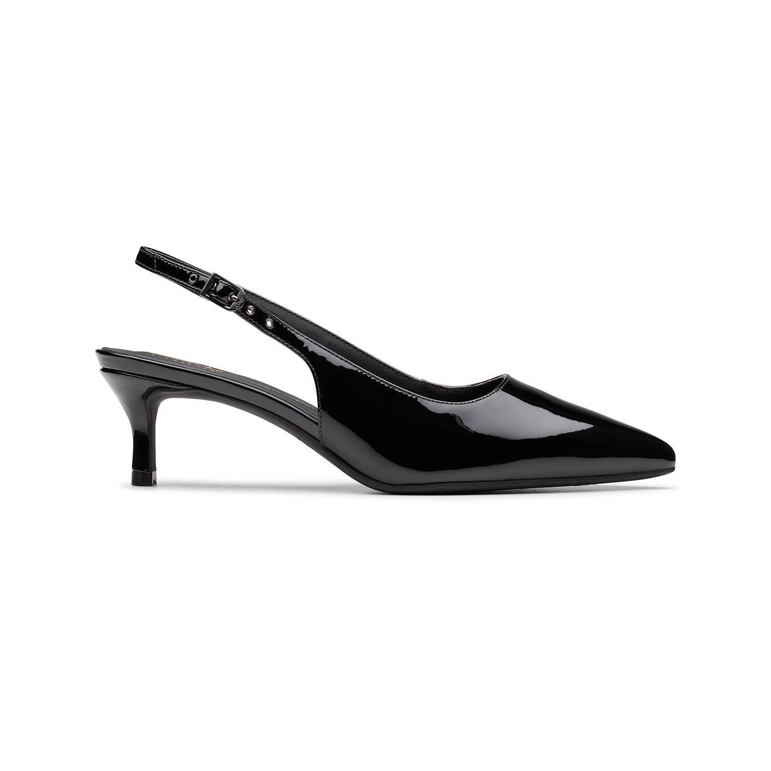 Zarey Sling is a modern take on a classic silhouette, perfect for any wardrobe. Combining a sculpted heel with a sleek point-toe shape, this shoe calls on glossy black leather for an elevated look. And with a Contour Cushion footbed and flexible rubber sole, it guarantees total round-the-clock support.